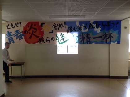今日の学年集会でお披露目した横断幕を掲示しました!みんなで大切にして、スローガンを覚えられるとイイですね。