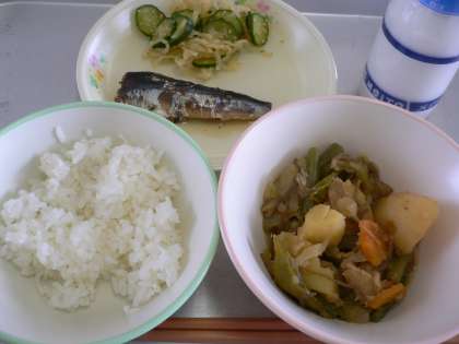 主食:ごはん 主菜:いわしのおかか煮