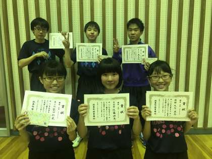 大会の結果、中学生男子の部1位河村君、3位森君、薮下君。中学生女子1位大寺さん、2位後藤さん、3位柴田さんでした。予定より遅くなってしまい、申し訳ありませんでした。