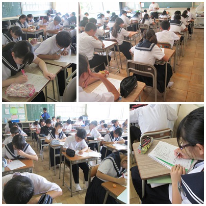 本日5時間目の総合の時間は、夏休みに行う職場体験の体験先を決めるアンケートを行いました。皆、熱い思いを選んだ理由に書いており、なるべく希望通りの職場で体験できると良いと思いました。