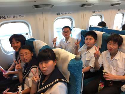 本日より3年生は東京に修学旅行に出発しました。無事名古屋から新幹線に乗り、今はお菓子タイムです!みんな楽しそうです!元気に行ってきます。