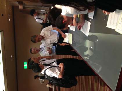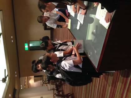 朝食会場に続々と集まって来ています。朝食はビュッフェスタイルです。今日は班別行動でたくさん歩きます。しっかり食べましょう。