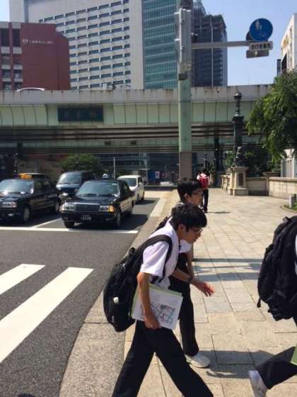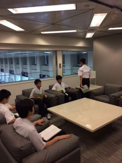 野村ホールディングスの企業見学です。日本橋を渡って大手町の見学会場に向かいました。上場する会社の社長が入る応接部屋に入れてもらい説明を受けました。
