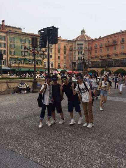 入園後すぐドナルドにあって大喜び。そして男子はすぐにサングラスを装着して園内を楽しみます。