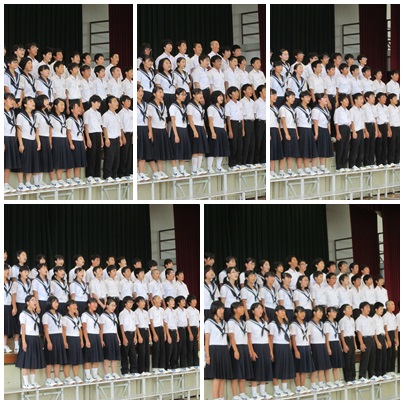 5限目,全校で校歌コンクールが行われました。