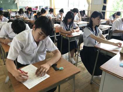 本日3年生の理科の授業では、運動とエネルギーの単元テストをおこないました。入試に向けてしっかり理解しながら授業を進めていっています。