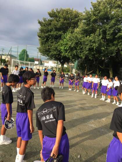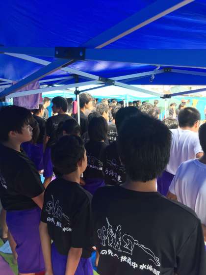 水泳の会場は滝中学です。今日は、熱い暑い一日になりそうです。競技も応援も精一杯頑張ります。