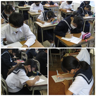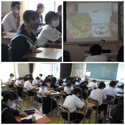 コロナ禍のために、プロジェクターと放送により各学級で行われました。図書委員の生徒による、絵本『命はどうしてたいせつなの?」の読み聞かせです。普段は手にしない、選ばない本に親しんでもらおう。また、自分の生活を見直してみようとメッセージが込められています。