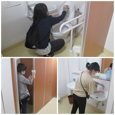 役員、委員のボランティアの皆様には、毎日、丁寧に消毒作業を行っていただきました。