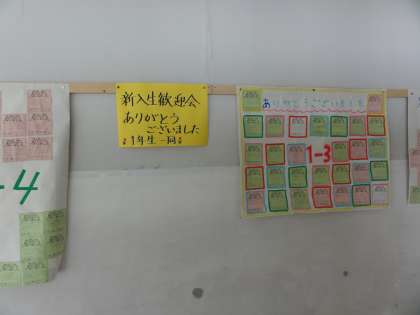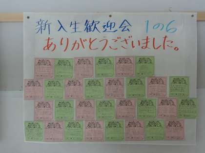 新入生歓迎会に対する、1年生全員の感謝の言葉が掲示されています。