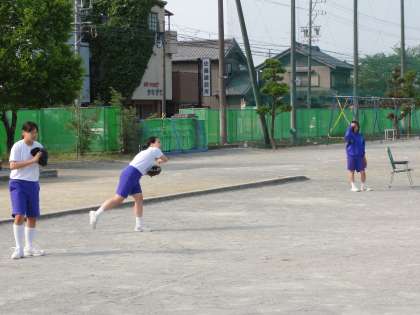 朝練はまだ、2年生だけの活動です。キャッチボールをする姿も様になってきました。