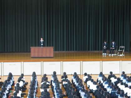 今日から3週間,3人の教育実習生とともに生活します。まずは,生徒たちや教職員の方にあいさつをしてから,1日が始まりました。