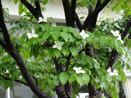 今はヤマボウシの可憐な白い花が見頃を迎えています。