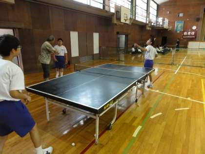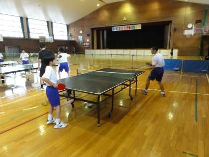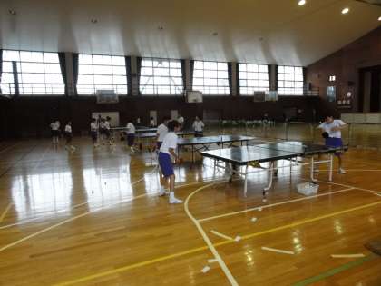 卓球部男子は昨日の西尾張大会の疲れも見せず、早くも秋の大会へ向けて実践的な練習を始めています。新しく部長になった加藤怜也くんは「まず、キャプテンとしてみんなをしっかりとまとめたいと思います。そして、基礎練習をしっかりまじめにやり、チームワークを育てたいです。秋の新人戦では団体はベスト4以上、個人でもベスト8以上を目標にがんばります」と決意を語ってくれました。
