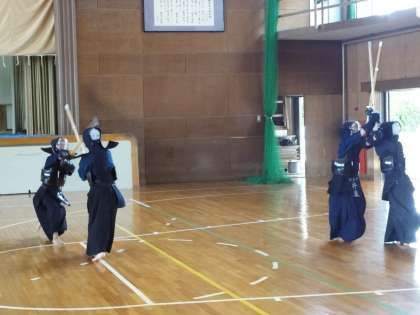 剣道部の練習は、夏の暑いときでも冬の寒いときでも道着と防具です。今日もいい汗を流しながら練習をがんばっていました。