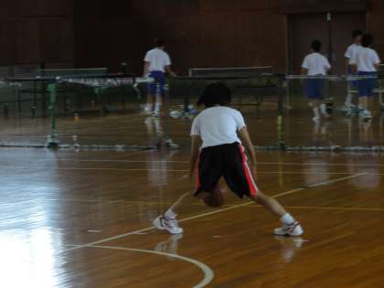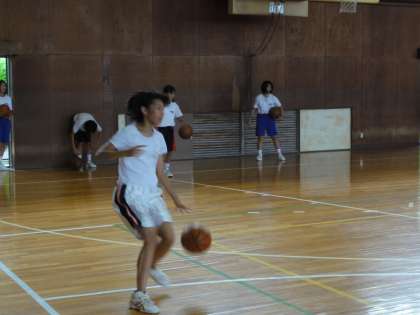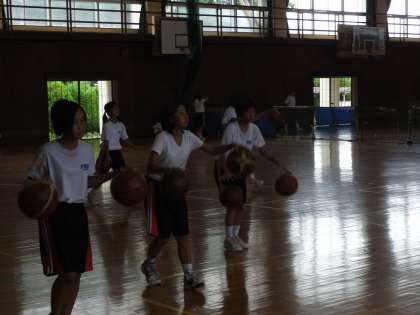 バスケットボール部女子は、ひさしぶりの練習で体調の調整をしつつ、基礎練習を繰り返していました。新部長候補(まだ正式決定ではないそうです)の小口真穂さんは「10月に新チームでの初めての大会があります。この大会で一勝でもできるように夏の間の暑くて厳しい練習をみんなで声を出して乗り切っていきます。基礎練習を大切に新しい技術を身につけられるようにがんばります。」と語ってくれました。