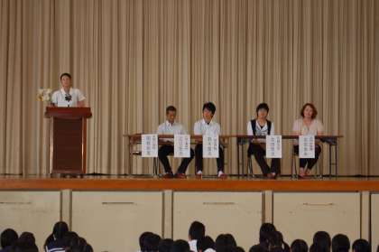 3年生は、扶桑中学校を卒業して、上級学校へ通っていたり、働いていたりする先輩方をお招きして、上級学校や職場の様子についてお話をしていただきました。生徒たちは、自分たちとそう年齢も違わない先輩たちが今経験していることを、自分たちの近い将来像と重ね合わせながら、熱心に聞きました。