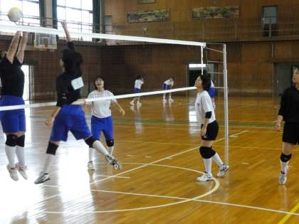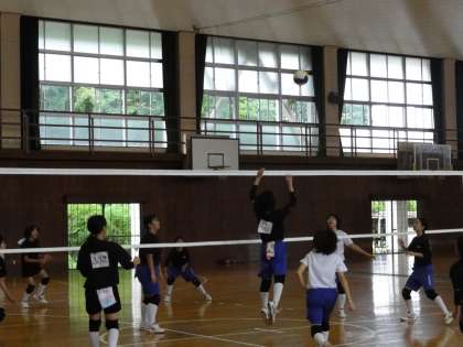 新部長の大島里菜さんは「私たちバレー部は、来年の夏の大会でベスト4以上を目標にがんばっています。私は部長としてこの目標が達成できるようにみんなを引っ張っていきたいと思います。夏休みの練習では、パスやスパイクなどの基本練習を中心にやってきましたが、後半からはフォーメーションなどのチームプレーの練習も取り入れています。まずは、秋の大会でいい成績が残せるようにがんばります。」と語ってくれました。