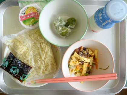共同調理場が新しくなって、初めての町内一斉給食でした。食器の色、お箸の色も一新されて、給食全体が明るくなったように感じます。