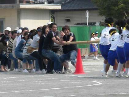 10月1日に行う本校体育大会の種目に,今年度も「綱引き」を企画しました。参加希望の方は,先日お子さんを通じて配付しました参加申込用紙に必要事項をご記入いただき,担任にご提出ください。50名近くの参加者があると,盛り上がると思います。