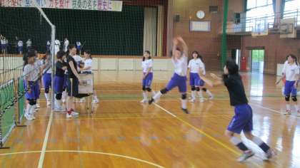 女子バレー部では、先週から2名の教育実習生の先生方を仲間に迎え、練習にますます活気がでてきました。