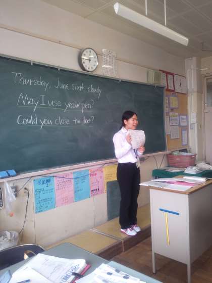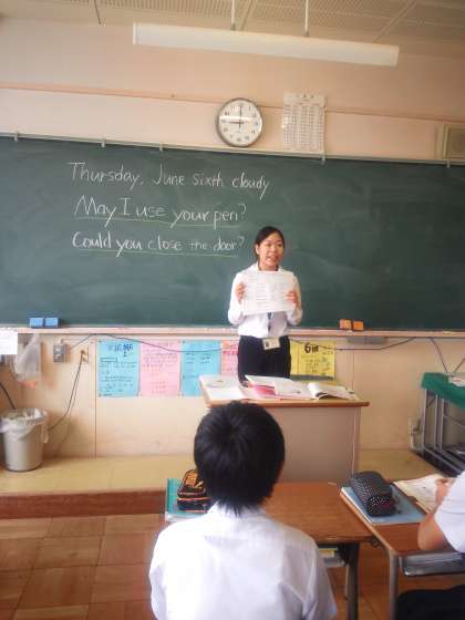 1時間目2年5組で教育実習生の伊藤先生が英語の授業をしました。丁寧に相手に依頼する表現を学びました。