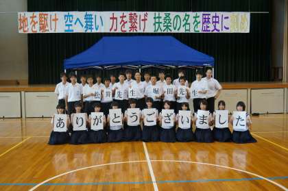 昨年度までお世話になりました松井先生・堀田先生より,テントを寄贈していただきました。本日,生徒集会で全校に紹介させていただきました。