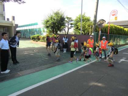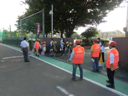 スクールガードの方が通学班の児童と一緒に登校していただいていました。