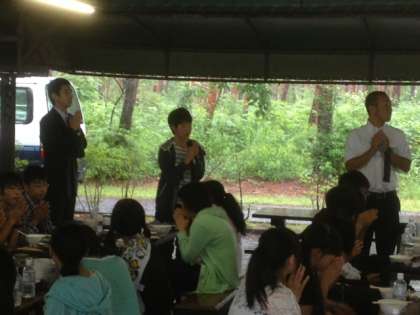 修学旅行だより 公開日 2013/06/26 更新日 2013/06/26 3年生 楽しい昼食が終わりました。 外は、大粒の雨が降っていますが 、バーベキューは、お腹の中はもちろん、冷えた身体を温めてくれました。 ごちそうさまでした、 いいね(0)