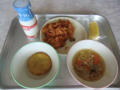 今日の給食 公開日 2013/07/16 更新日 2013/07/16 学校の様子 7月16日(火)の給食です。 o チキンライス o コンソメスープ o 枝豆コロッケ o 牛乳 o 冷凍パイン いいね(0)