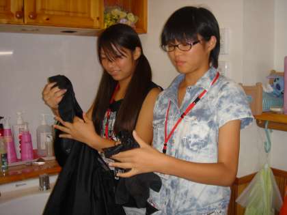 「るぴなす」での職業体験の様子です。 タオルの片付けをしたり,髪の毛の洗い方を学んだりしていました。