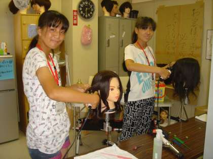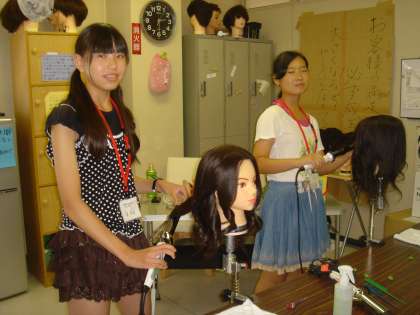 コテを使って髪の毛を巻く練習をしていました。