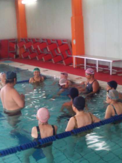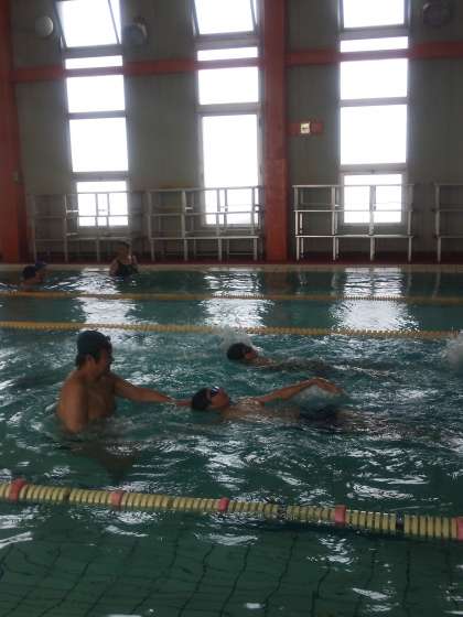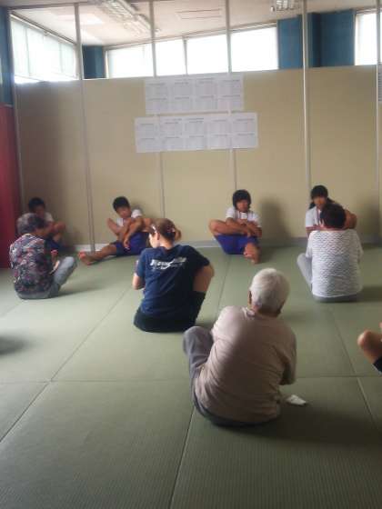 江南市にある桃太郎スイミングスクールでは男子2名女子2名がお世話になっています。午前は子どもの夏季短期スイミング教室のお手伝いをしました。午後は成人クラスの体操とスイミングのお手伝いです。水泳部2名、サッカー部1名、ソフト部1名ですが、バタフライも含め、どの子も水泳部さながらにお手本となる泳ぎを披露しました。