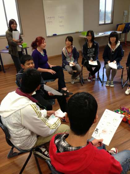 自分の名前や、気持ち、好きなものを伝える練習です。