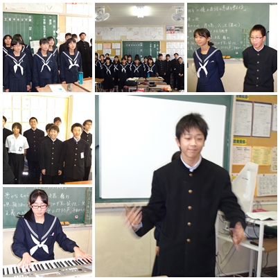 1年生最後は,5組です。5組は,「HEIWAの鐘」を歌います。5組では,パートリーダーがみんなが歌っている前に立って合唱後,感想や改善点を述べていました。