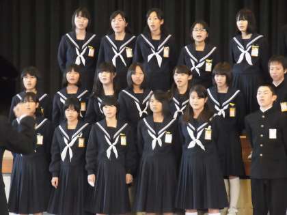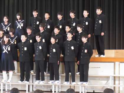 「僕たちは「空駆ける天馬」という曲を歌います。僕は指揮者ですがはじめて皆が歌ったときタイミングが合わず、なかなかうまく歌えませんでした。しかし先生のアドバイスなどを受け、今順調に歌えています。