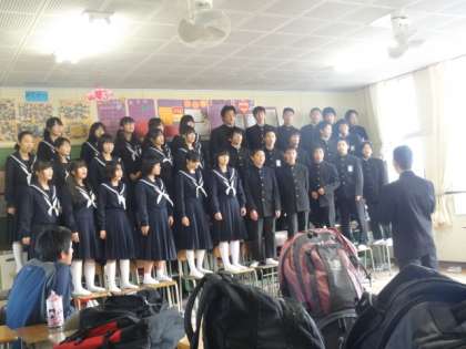 中間発表会では体育館で声が響かないことや強弱がついていないなどいくつかの課題がでました。今ではこの課題を克服しようと頑張って練習しています。3組全員で頑張るのでよろしくお願いします。」