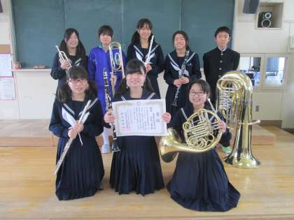 12月24日(火)、稲沢市で行われた「愛知県アンサンブルコンテスト西尾張地区大会」に本校の吹奏楽部のメンバーが出場し、混成八重奏の部で銀賞を受賞しました。