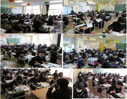 今日の授業 公開日 2014/01/07 更新日 2014/01/07 1年生 今日の6時限目に競書会が行われました。 1年生は「新しい決意」という字を自分たちの決意とともに真剣に書いています。 いいね(0)