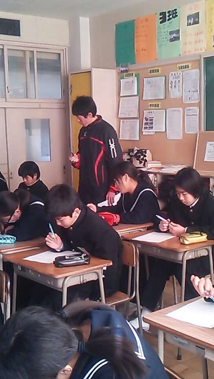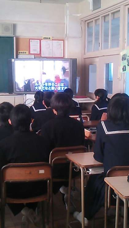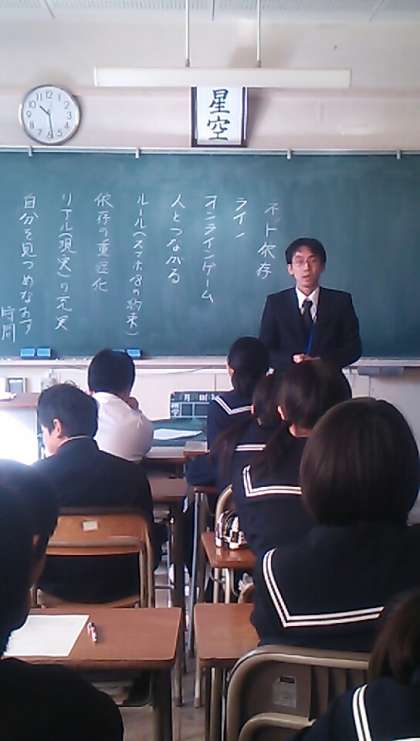 2時間目の1年4組は情報モラルについての映像を見て考える授業でした。ネット依存、オンラインゲーム、スマホ18の約束、リアル(現実)の充実、などのキーワードを元にスマホやネットと上手に付き合うことの必要性を学びました。
