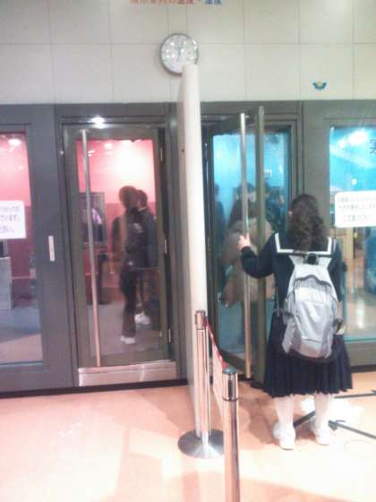 右が極寒の部屋、左は暑い部屋です。環境とくらし、のブースで温度差を体感しています。