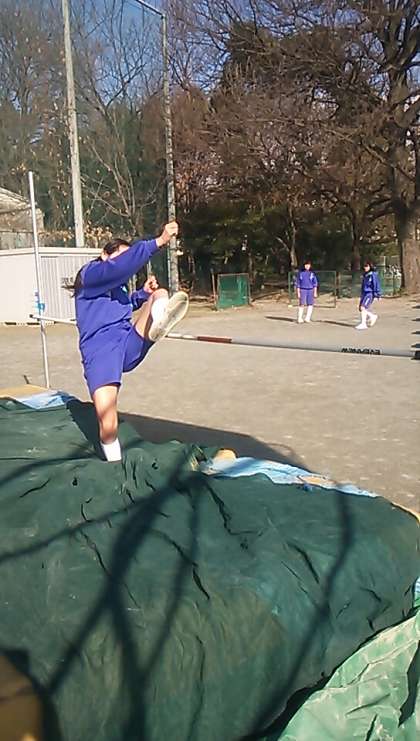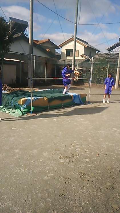 2年女子の体育は高跳び・幅跳びの計測をしています。今日の最高記録は125センチです。お互い声を掛け合って励ましながら、記録更新を狙います。