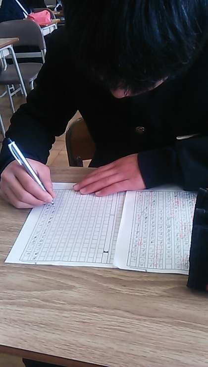 卒業式の翌日、朝会があります。生徒会長である香川くんが、在校生に向けてメッセージをおくります。先週末から原稿を作成中です。