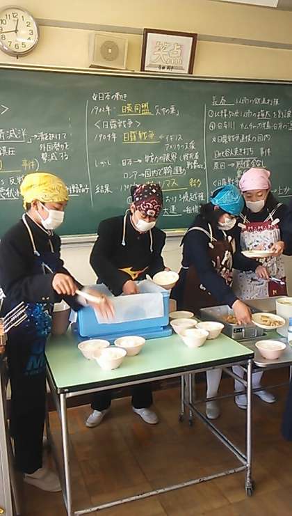 今年度最後の給食です。2の1の給食当番は立候補です。ボランティア精神ばっちりの10人が頑張ってくれます。さすが、かっこいい2年生です。