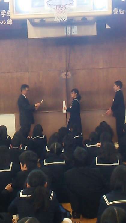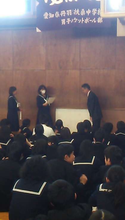 修了式のあと、2年生は学年集会で学習コンクールの表彰を行いました。漢字・計算・英単語コンクールを1年間で3回行い、すべて満点という偉業を成し遂げた生徒に「偉人賞」をおくりました。今年は男子1名、女子3名が受賞しました。曽我先生より、来年度はさらに偉人が増えますように…と話がありました。