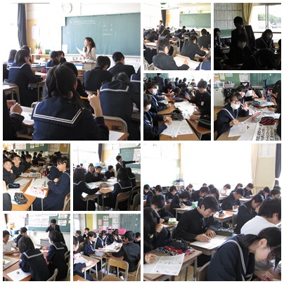 授業参観では、進路について考える授業を行いました。自分に合った職業について考えたり、進路先の種類について知ったりしました。班で相談することで、進路の意識が高まったようです。