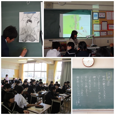 本日の公開授業で各クラス「14歳という年齢を考える」授業を行いました。昔は,この年頃になると元服をし,一人前の大人として扱われました。現在では,体格や休日の服装や持ち物を見ると大人と見間違う人もいます。しかし,心の部分では,まだ大人になりきれていない部分もあります。また,法的に見ると,責任を負わないといけない部分も出てきて,責任年齢とも言われています。