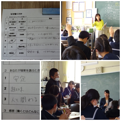 その後,自分が職業を選ぶときに重視するものを3つ考えました。最後に,なぜ働くのかということをみんなで考えました。