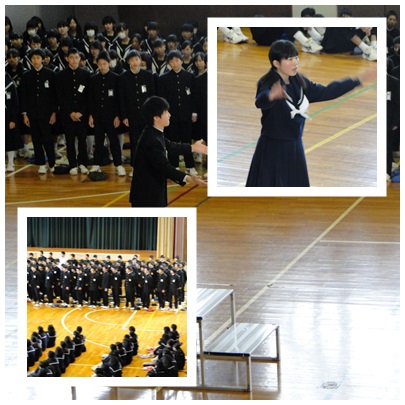 扶桑中学校の三本柱の一つである「合唱」の活性化に向け、生徒会が朝の合唱練習を計画しました。今日を含めて4回行います。全校で練習し、合唱練習への関心を高めることで、合唱コンクールを盛り上げるだけでなく、その先の卒業式などの行事へもつなげていきたいという思いがあります。全校合唱のCOSMOSを練習し、その後学年合唱の練習を行います。今日は3年生が「河口」を1,2年生に聴いてもらいました。お互いの合唱を聴きあうことで刺激し合い、高められることを期待しています。短い時間での練習です。時間を大切に、中身の濃い練習にするために、一人一人が考えて練習に望む姿勢を身につけてほしいです。