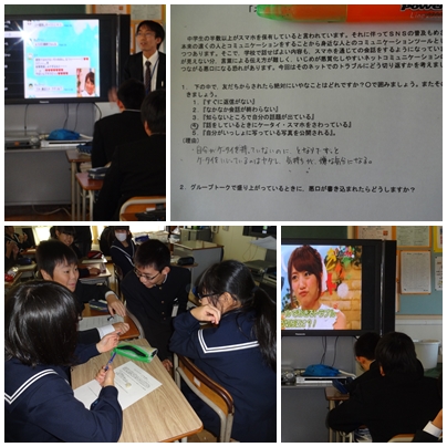 今週から,各学年情報モラルに関する授業が行われています。今日の6時間目は,2年1組で,NHKの”いじめをノックアウト”の7月4日に放送された「ネットでトラブル!?どう切り返す?」を視聴しながら授業を進めました。